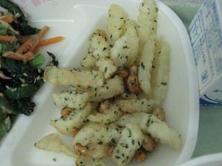 今日の新メニューは「のり塩ポテト」です。大豆とポテトを揚げ、