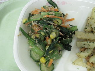 旬の小松菜を使ったサラダです。ツナを入れて食べやすくしてあります。