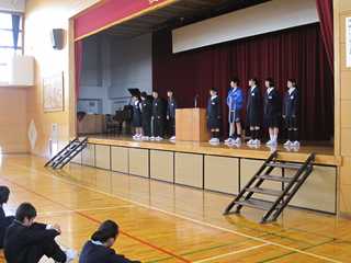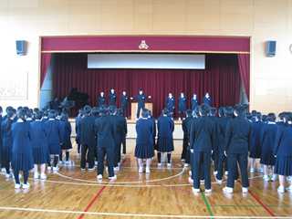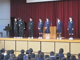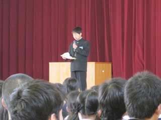 本日(25日)、生徒会本部が担当する生徒朝会を行いました。